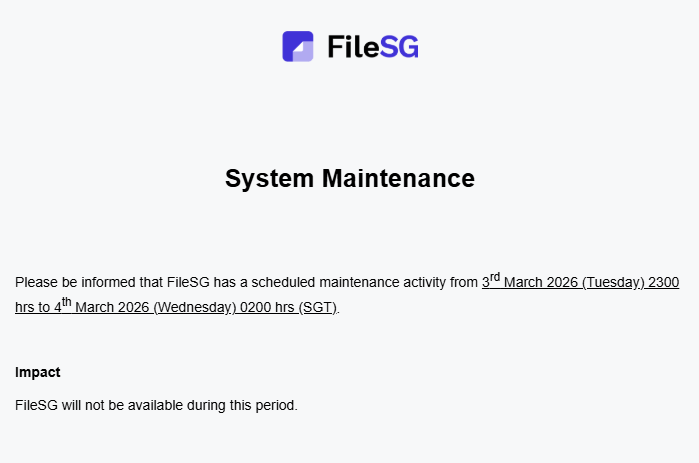 March 2026 - FileSG System Maintenance Notice!