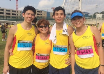 It is no different for 64-year-old Rita Cheok who is a mother herself. In her 40s, Rita has completed several full and half marathons, and other races like the Great Wall of China marathon. Inspired and supportive children who are in their late 20s to mid 30s have also joined her in local races like the Yellow Ribbon Run and overseas races in Adelaide and Portugal.