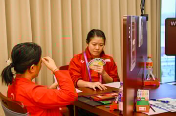 Lam Ze Ying looks at her cards during the Asian Games mixed team round robin match against Indonesia in Hangzhou. (Photo: Sport Singapore/Bryan Foo)
