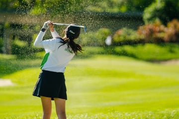 Tan Wan Hsien, Temperance from CHIJ Our Lady of Good Counsel sailed the ball powerfully from the bunker onto the green.